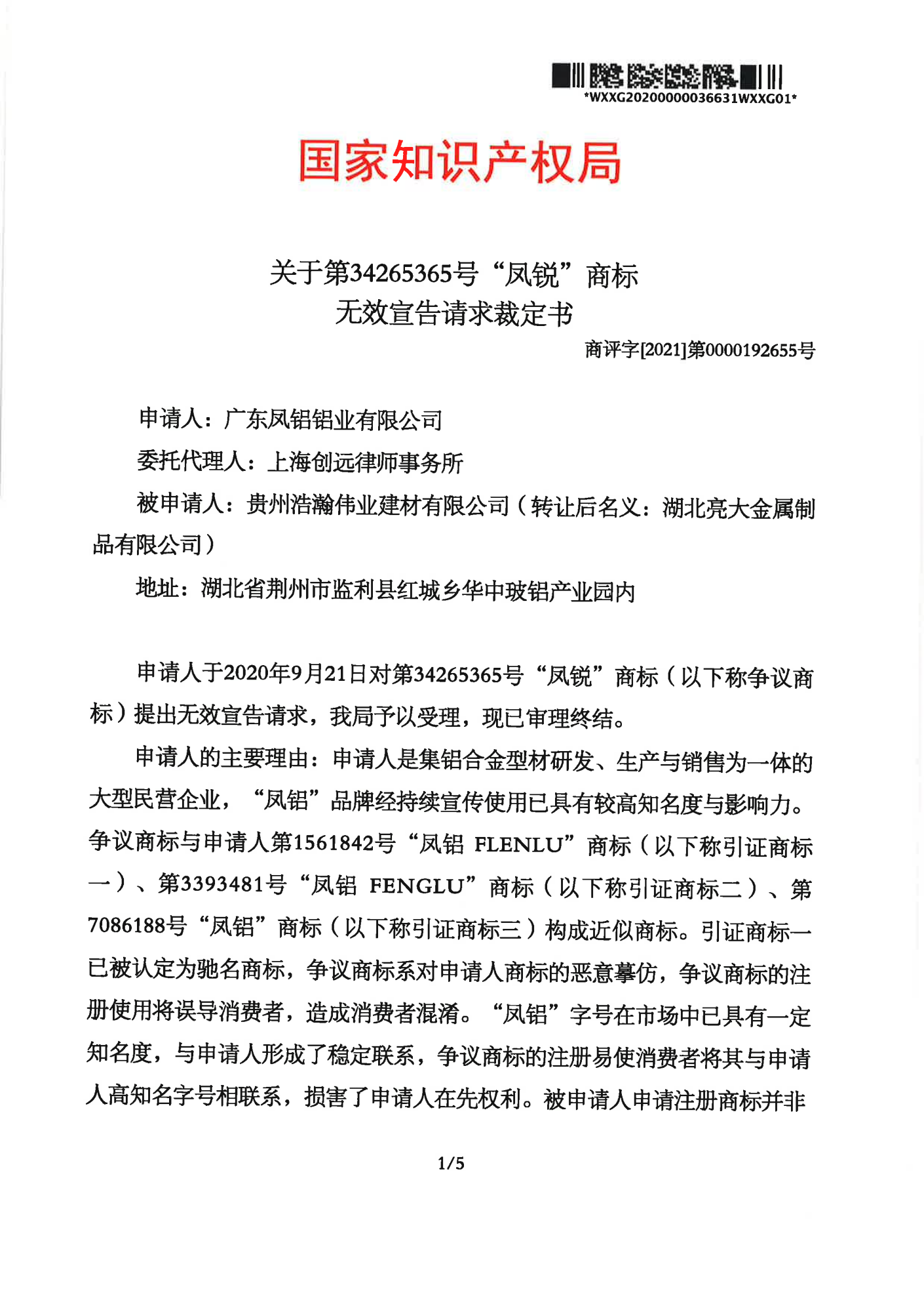 莱芜辉知队 | 国家知识产权局:“凤锐”商标无效